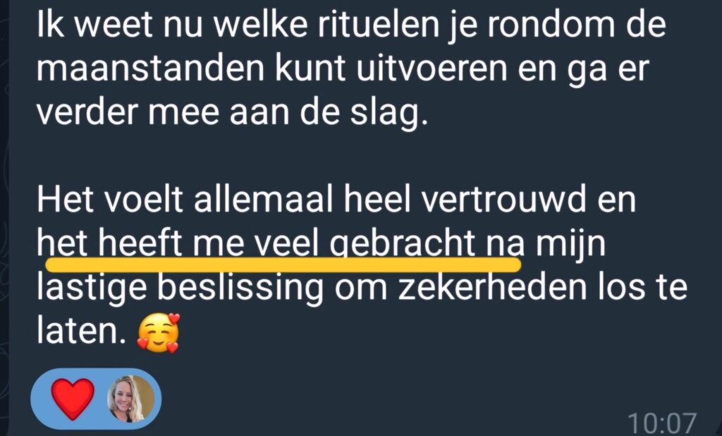 Absoluut. Het werkboek helpt je om dieper te reflecteren, bewuster te werken met de maancyclus en meer ritueel toe te voegen aan je praktijk.